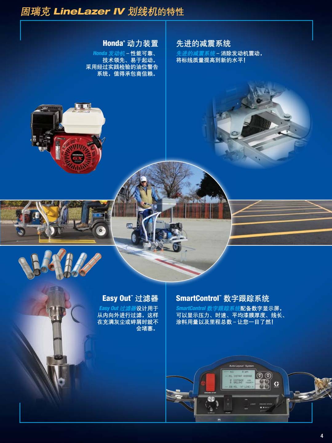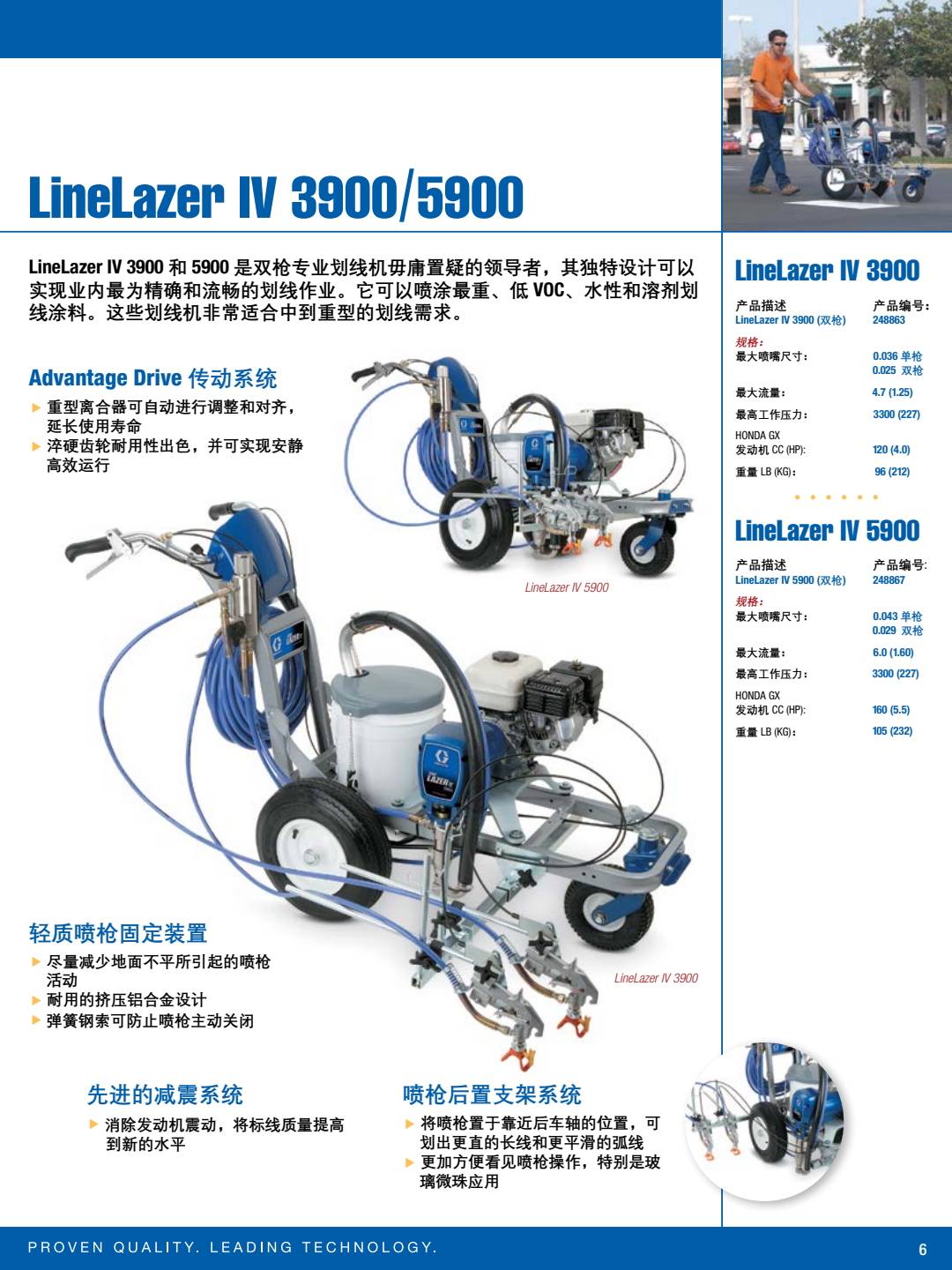 LineLazer 系列划线机产品不断改进,以满足道路划线行业不断变化的需求,一次又一次地为专业划线承包商带来巨大效益。LineLazer IV 系统秉承创新和性能的优良传统,建立了一套无与伦比的划线机产品系列。
